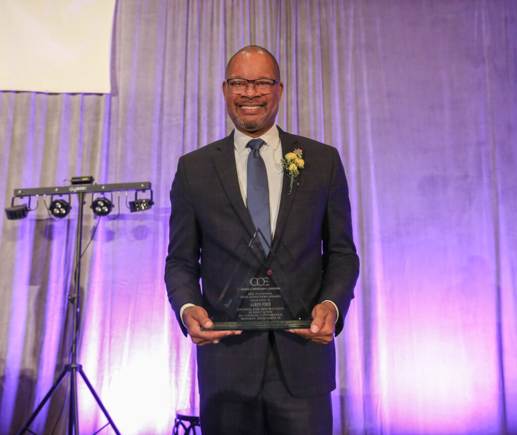 The TRIO Achiever Award honors the accomplishments after college of individuals who obtained a degree with the help of one of the eight federal TRIO programs for low-income, first-generation students.